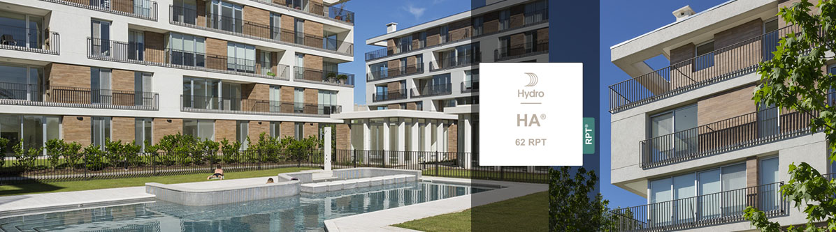 por medio de barras de poliamida 6.6 con 25% de fibra de vidrio, de 14,8 mm de ancho en el marco, y de 16 y 26 mm de ancho en la hoja, con cordón termofusible en los extremos para garantizar un correcto sellado contra los perfiles.